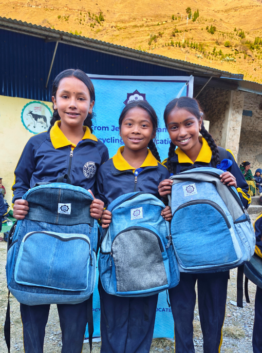 EDUCATION: By upcycling old denim into school bags and stationery supplies, this project directly contributes to quality education for students in rural Nepal.The upcycled school kits are durable and sustainable.