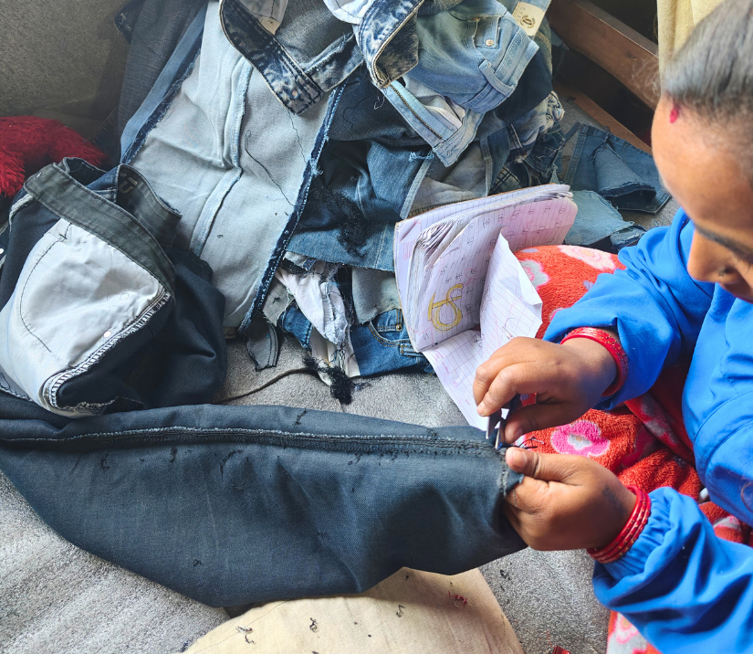 This is our flagship initiative that collects old jeans from urban communities and upcycles them into school kits for students in rural Nepal, increasing access to quality education, promoting sustainability, and empowering community. By combining waste reduction, livelihood generation, and improved educational access, the initiative advances environmental sustainability and promotes inclusive, equitable development.