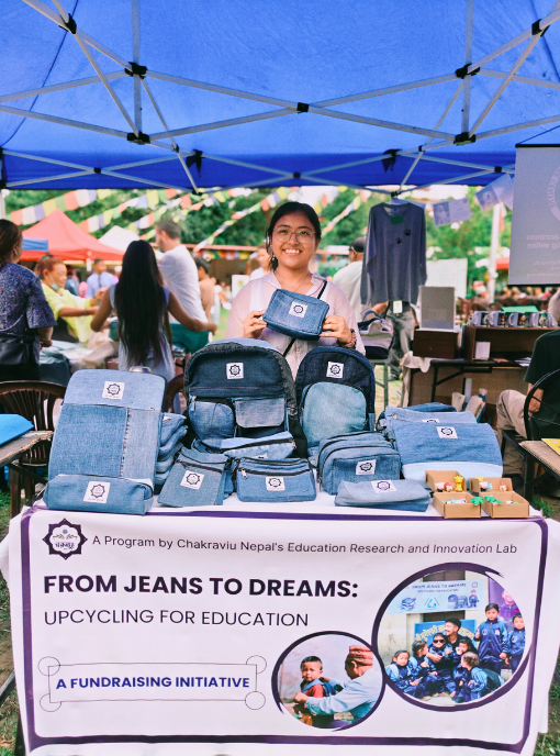 The Upcycling Lab applies a strict 100% material-utilization approach to every pair of donated jeans. Once the primary fabric panels are allocated for school bags and educational kits, the residual denim is systematically repurposed into secondary products such as tech pouches, tote bags, and utility pouches. These items are crafted by trained local artisans of Chakraviu Nepal, primarily women from rural communities, and introduced to the market as revenue-generating goods. Income from these sales contributes directly to sustaining the upcycling process, supporting artisan training, and expanding the distribution of school kits to children in need. By eliminating material waste and reinvesting proceeds into community and educational outcomes, this circular model reinforces environmental responsibility, strengthens local livelihoods, and creates a sustainable funding loop that strengthens the long-term viability of the initiative.